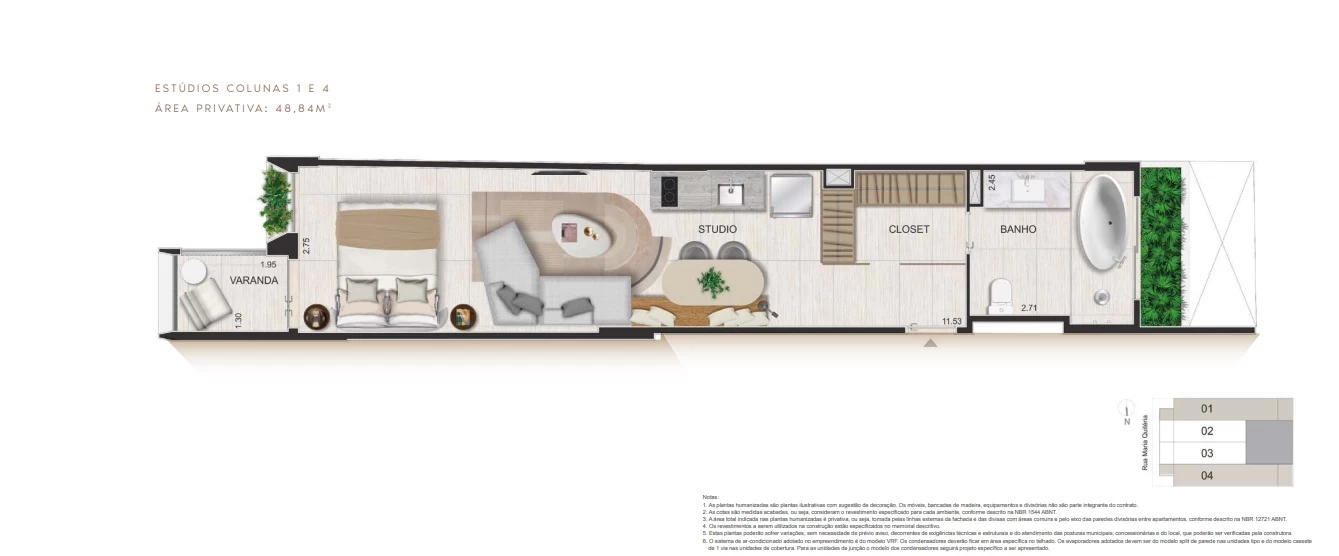 Estúdios com 38m² e 48m².