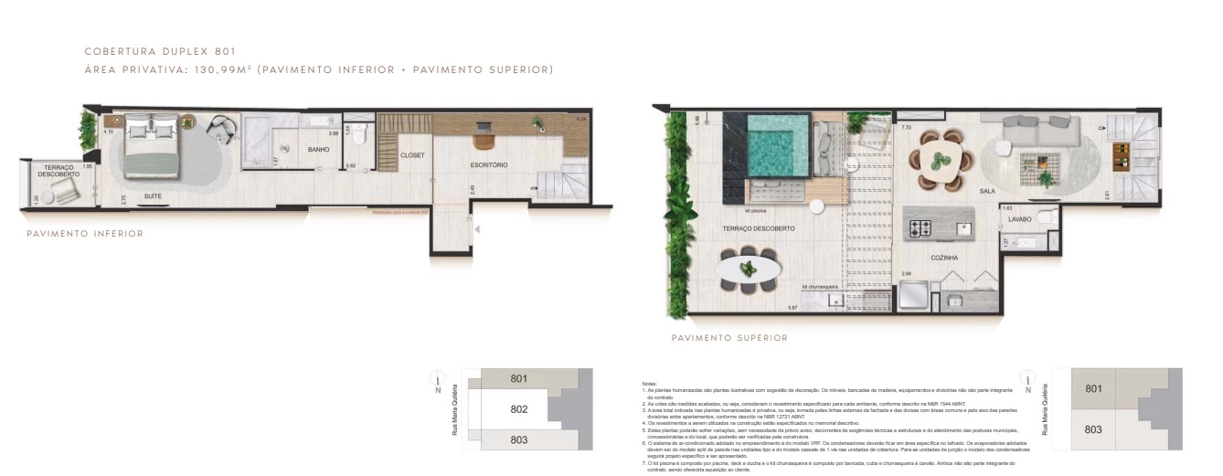 Cobertura Duplex com 129m².